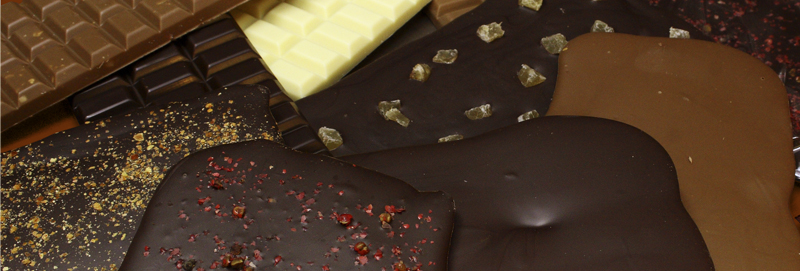 Schokoladentafeln in Vollmilch-, Dunkler- und Weißer Schokolade.