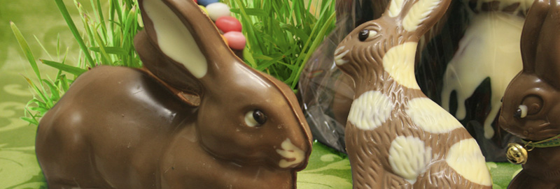 Auch die handgegossenen Osterhasen verstecken sich bei uns nicht,
