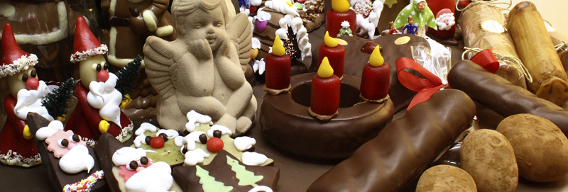 Nougat und Schokolade (z. B. verschieden große und artige Schokoladenmänner,